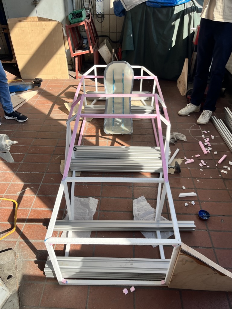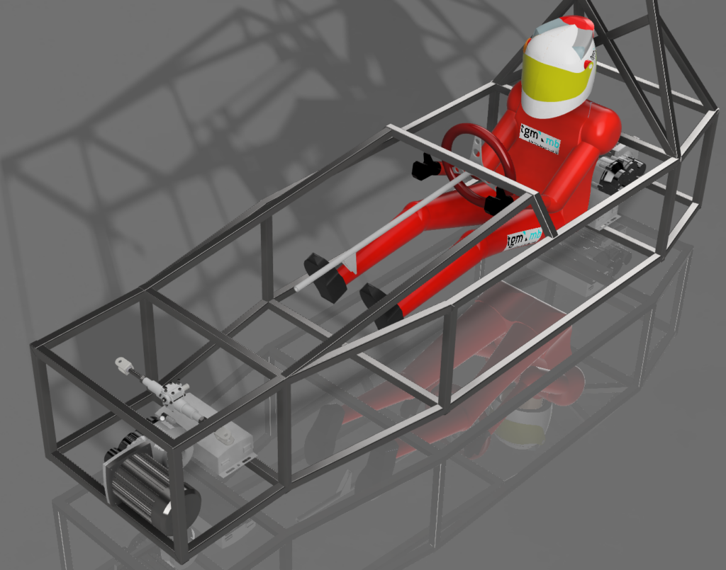 Im Zuge des Konstruktionsprozesses wurde zur Überprüfung der Ergonomie der Fahrzeugrahmen in Originalgröße aus Styrodur gefertigt. Dabei wurde festgestellt, dass die Breite des Cockpits um 100 mm verringert werden kann.