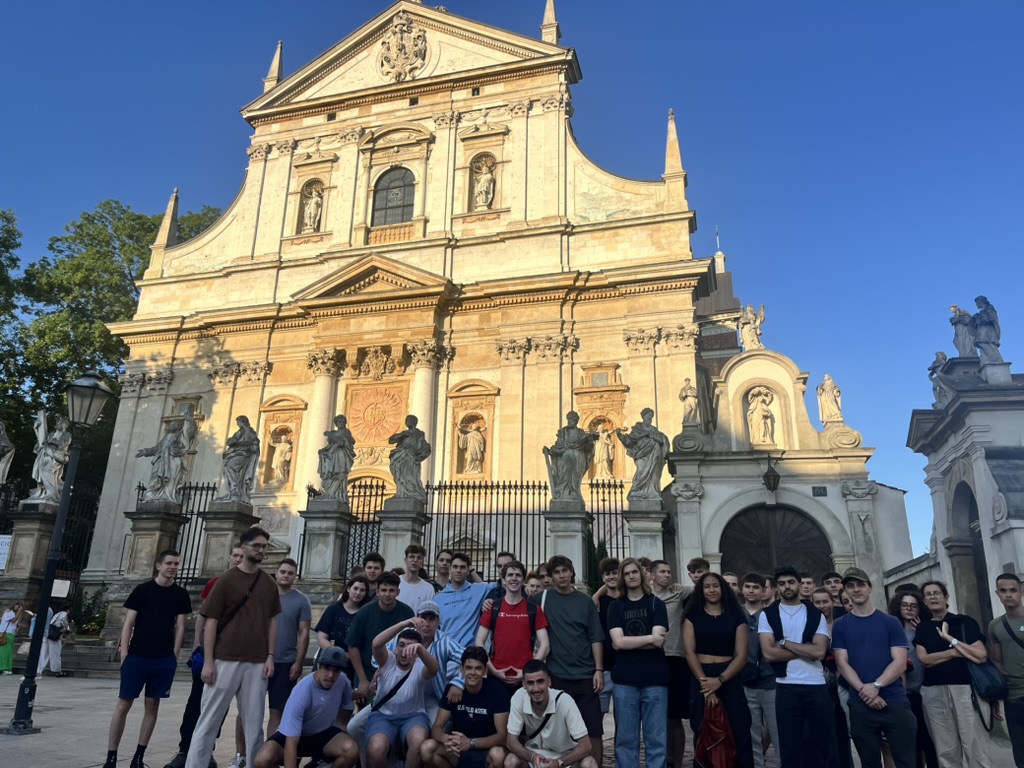 Vom 24.-26. Juni reisten Schülerinnen und Schülern aus den vierten Jahrgängen der Abteilung Maschinenbau und der Abteilung für Wirtschaftsingenieure gemeinsam nach Krakau und Auschwitz. Die bereits mehrmals ähnlich durchgeführte Exkursion begann am Montag Nachmittag mit einem Rundgang zum Thema „auf den Spuren von Schindlers Liste“ durch Kazimierz, dem jüdischen Viertel von Krakau.