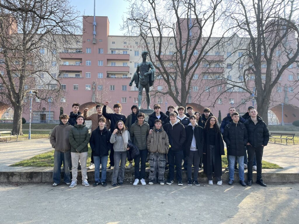 Bei dem umfangreichen Rundgang durch die Innenhöfe erhielten die Schülerinnen und Schüler einen hervorragenden Einblick in den Aufbau des Karl-Marx-Hofs und die Konzepte, welche das Rote Wien mit dem ambitionierten Wohnbauprogramm verfolgte, nämlich die Idee der Schaffung eines „neuen Menschen“, welcher die sozialdemokratischen Ideale verkörpern sollte. Dass es gar Hinweise und Anleitungen gab, wie man eine Wohnung zu putzen und zu pflegen habe, sorgte bei nicht nur einem Schüler für erstaunte Blicke.