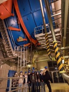 Am Freitag vor den Osterferien war es endlich soweit! Ein beinahe jungfräuliches Gefühl – nach zweieinhalbjährigem covidbedingten Schularrest konnten wir endlich unsere erste Exkursion starten! Nicht einmal das Wetter mit eisigen Temperaturen und vorösterlichem Schneesturm während der Anreise konnte uns die gute Laune nehmen. Im Kraftwerk Freudenau angekommen wurden wir von einem Mitarbeiter bezüglich der Sicherheitsvorkehrungen unterwiesen; wir fassten unsere Helme aus und los ging`s…