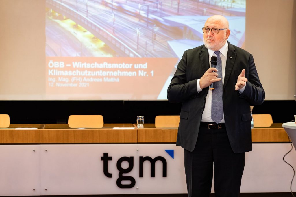 Am 12. November 2021 trafen sich unter Einhaltung der Covid-Veranstaltungsregelungen Schüler*innen der Maturaklasse 5C der Abteilung Wirtschaftsingenieure/Schwerpunkt „Logistik“ mit dem CEO der ÖBB, Andreas Matthä und diskutierten vor rund 160 Schülerinnen und Schülern im Exnersaal über Zukunft, Karriere, Wirtschaft und Schiene – der Gesprächsstoff ging nicht aus.